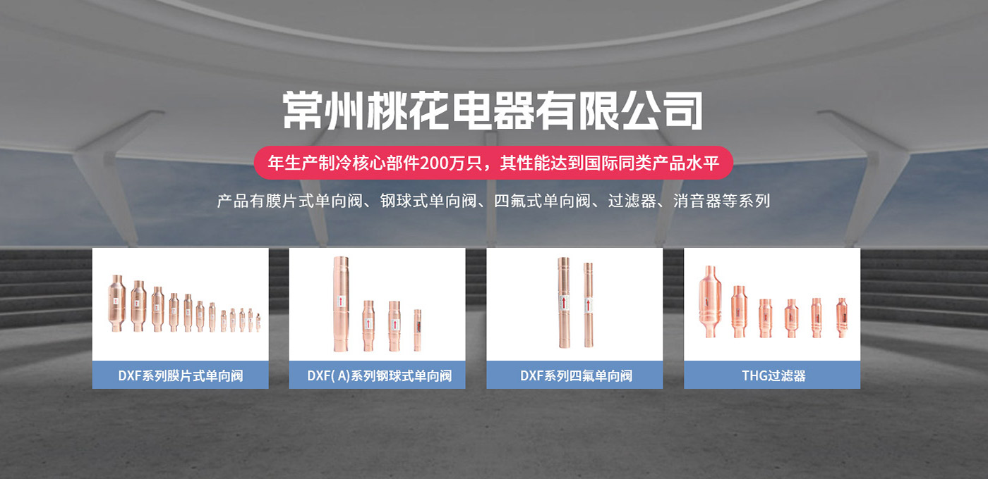 常州桃花電器有限公司地處中國長江“金三角”之稱的上海至南京高速公路、城際高鐵、常州高新經(jīng)濟(jì)技術(shù)開發(fā)區(qū)路段,交通便利、技術(shù)力量十分雄厚。它是集研究、開發(fā)設(shè)計(jì)、制造和經(jīng)營制冷核心部件的企業(yè),主要生產(chǎn)中央空調(diào)上使用的制冷部件。產(chǎn)品有膜片式單向閥、鋼球式單向閥、四氟式單向閥、過濾器、消音器等系列。年生產(chǎn)制冷核心部件200萬只,其性能達(dá)到國際同類產(chǎn)品水平?! ∑髽I(yè)擁有先進(jìn)的科學(xué)技術(shù)、國際先進(jìn)的生產(chǎn)加工設(shè)備和精密的檢測儀器,并已通過ISO9001質(zhì)量體系及CE認(rèn)證,公司歷史悠久,2000年起,經(jīng)過長期積累、沉淀,經(jīng)驗(yàn)豐富,從而保證了產(chǎn)品的高質(zhì)量、高性能、高耐用性。企業(yè)產(chǎn)品在國內(nèi)外市場具有較高的知名度,深受眾多中外品牌制冷客商的好評。主要客戶有約克、麥克維爾、美的、開利、特靈、頓漢布什、清華同方、天加等.并出口北美、歐洲、東南亞等地區(qū)。  高品質(zhì)產(chǎn)品是企業(yè)的保證,周到服務(wù)是合作友誼的承諾,企業(yè)本著“求